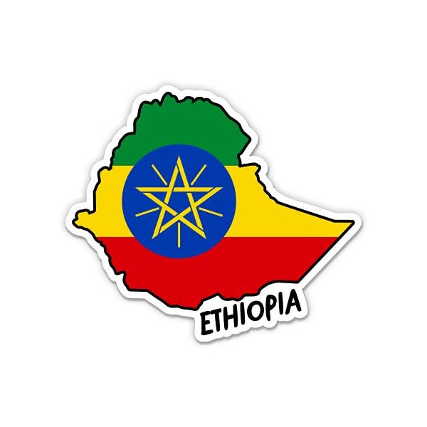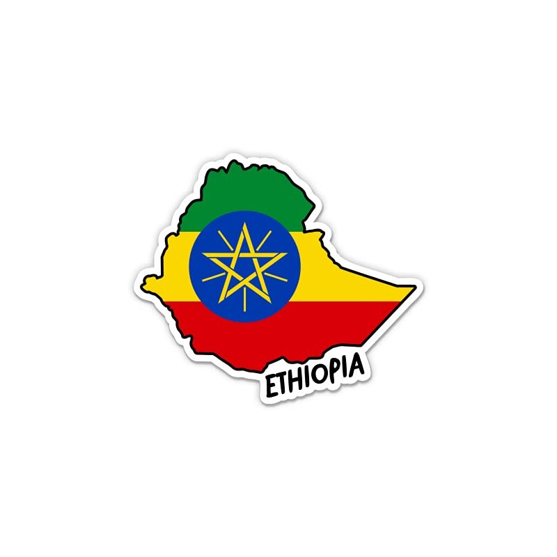 Squiddy Ethiopia Map with Flag - Vinyl Sticker Decal for Phone, Laptop, Water Bottle - 3"