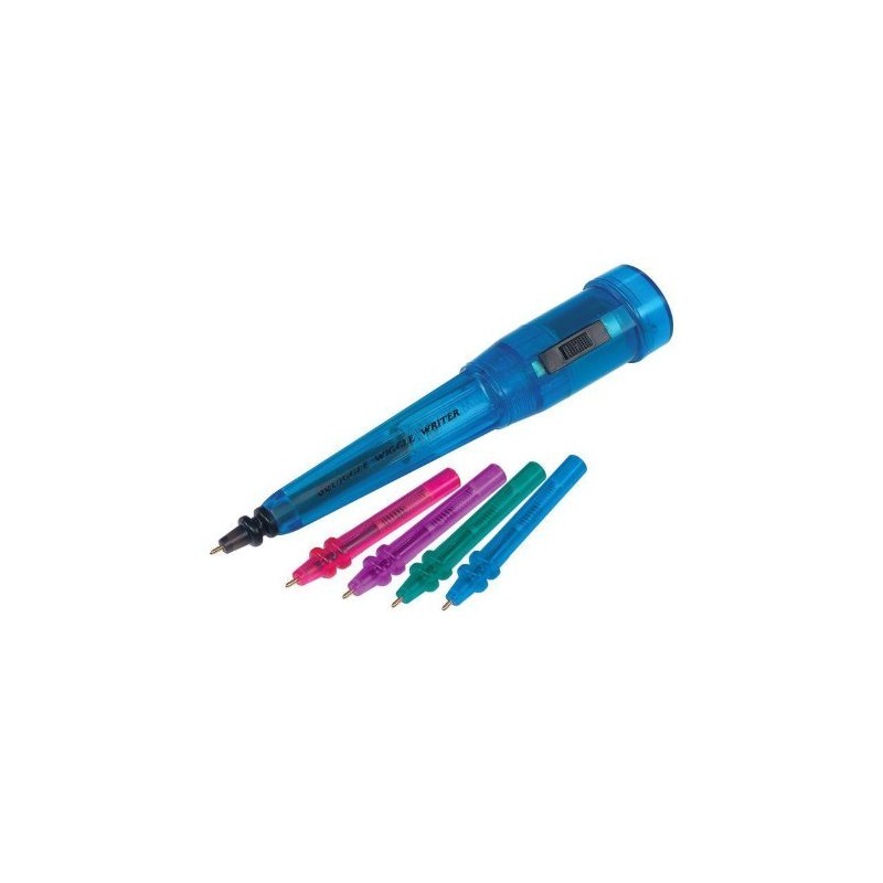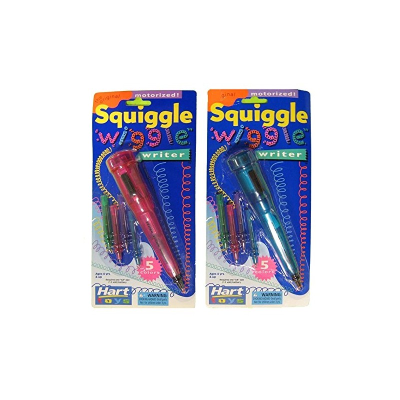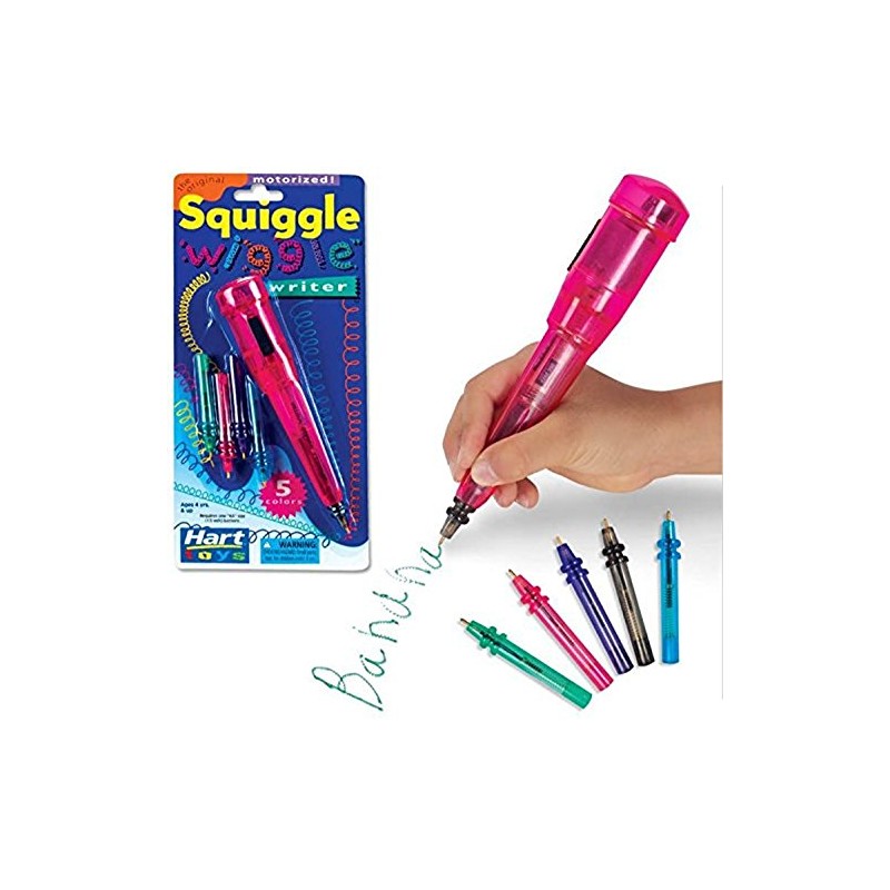 The original vibrating, motorized pen comes in hot new clear colors, creates squiggle writing loops with replaceable color points, gives you hours of creative fun, endless "Squiggle Art" on most papers. Recommended age for use: 4 and up.