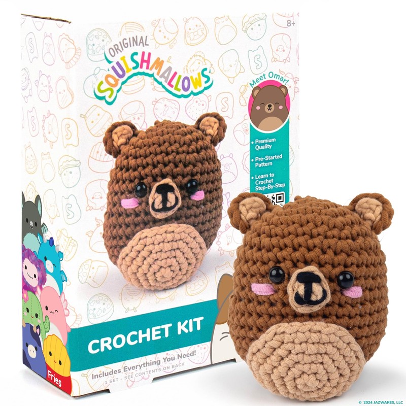 Squishmallow Original Omar The Bear Crochet Kit, Includes Yarn, Crochet Hook, Starter Hooks, Step-by-Step Tutorials, Exclusive Crochet Kit for Beginners, DIY Craft, Crochet Kits, Great Teen Gifts
