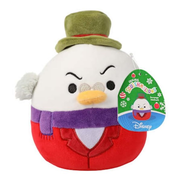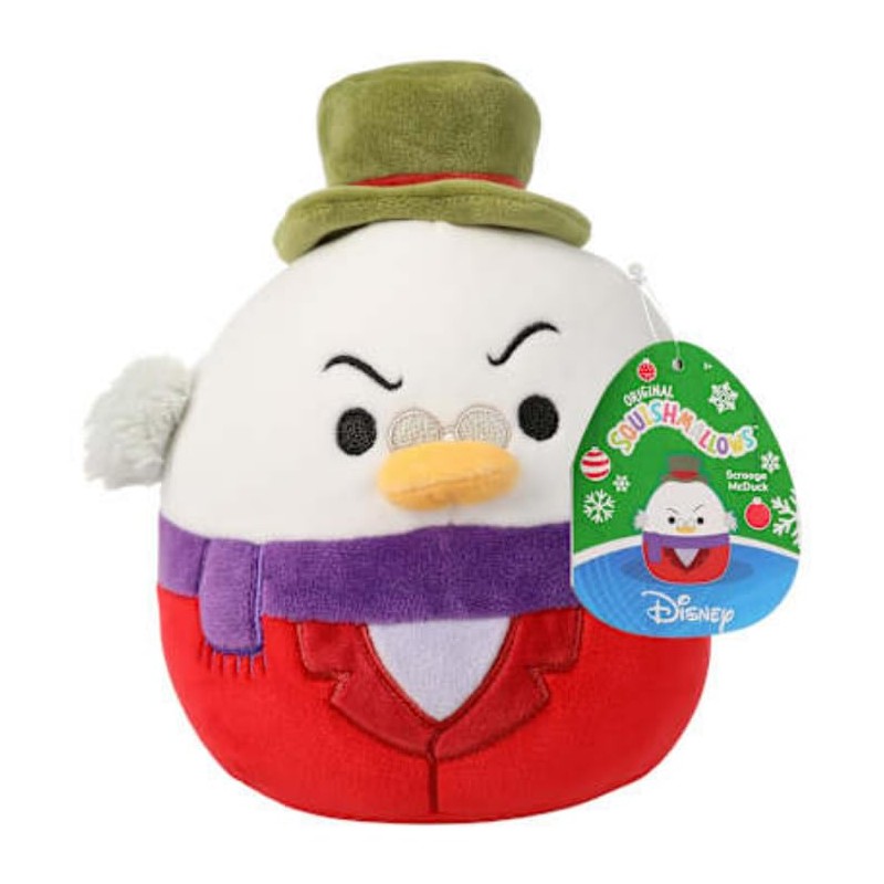 Bring the iconic Scrooge McDuck to life with this adorable 6.5-inch Squishmallows plush! Based on the beloved Disney character, this huggable and squeezable plush toy captures Scrooge's signature look with his top hat, glasses, and money-filled jacket. Made with ultra-soft and cuddly materials, this Squishmallows Scrooge McDuck plush is perfect for snuggling up with or displaying as a fun collectible. Measuring 6.5 inches tall, it's a great size for kids and adults alike. Whether you're a fan of DuckTales or just love cute and quirky plush toys, this Scrooge McDuck Squishmallows is sure to bring a smile to your face. Collect them all and create your own cozy squad of squishy friends!