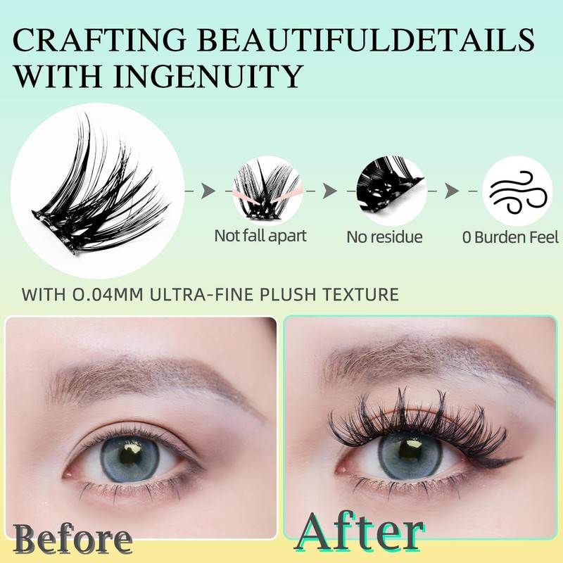 • The upgraded adhesive strips are durable and resist detachment, ensuring they stay in place even after extended wear, ensuring lashes remain in perfect condition all day. Removal is effortless, leaving no residue or irritation
