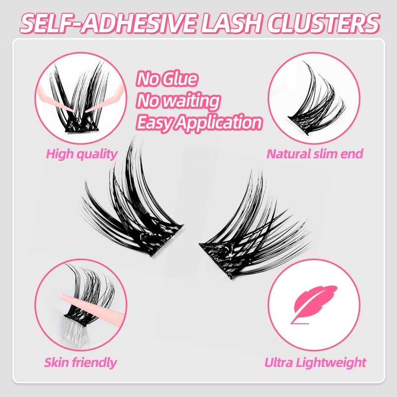 Squsaya Self Adhesive Eyelashes Natural Lash Clusters kit Pre Glued Eyelash C...