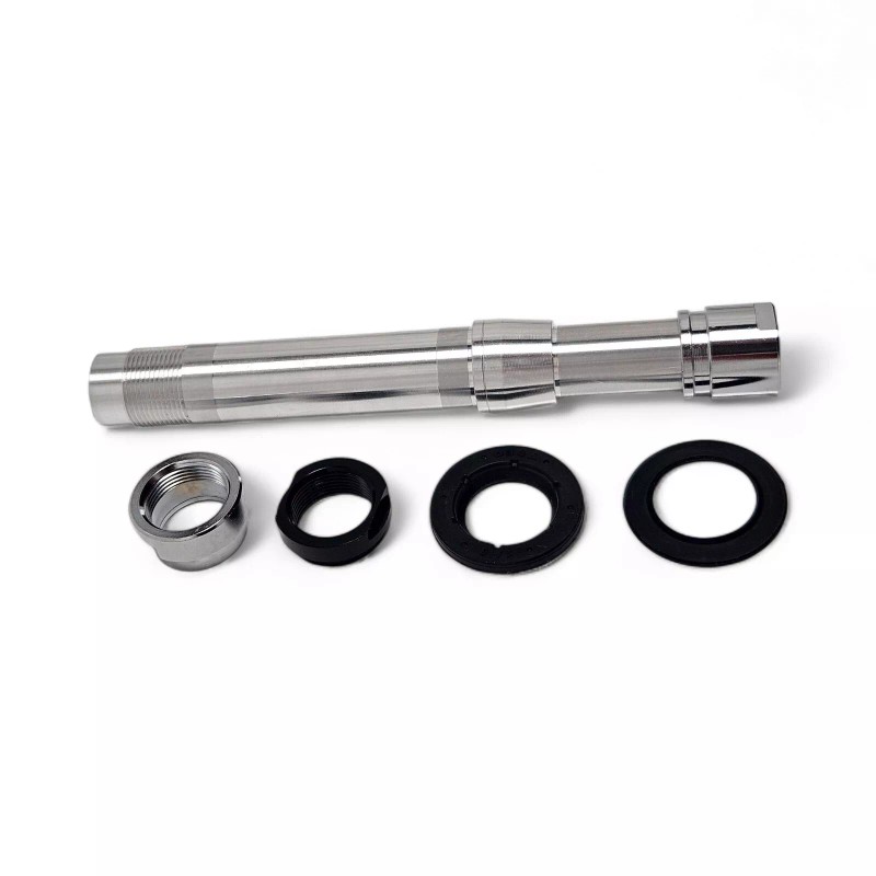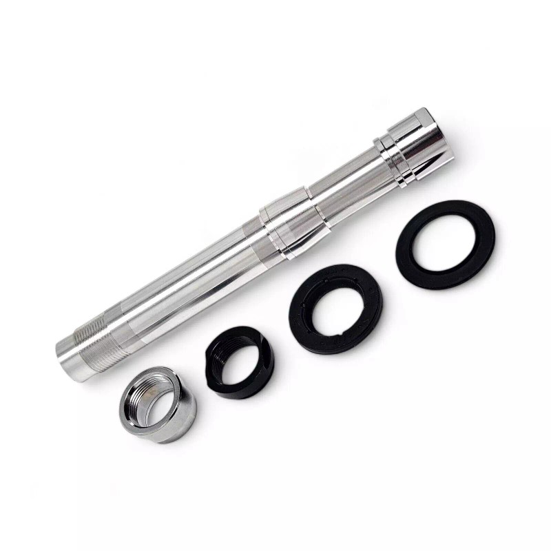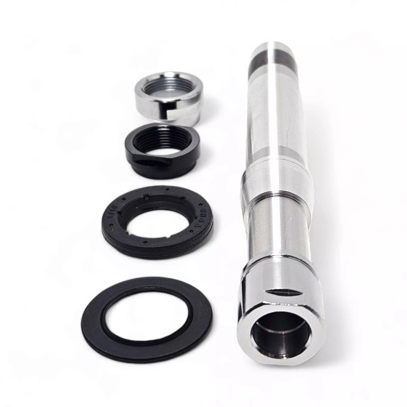 - Includes Axle, threaded lock nut, dust seals and end caps only (No Bearings, thru-axle, quick release, or hub Included)