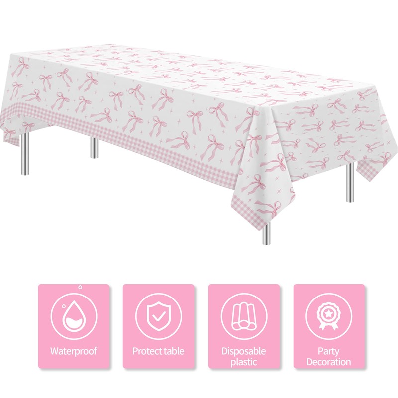 - 【Easy Cleanup】Say goodbye to post-party cleanup stress! Our disposable pink bow party decorations tablecloth makes tidying up a breeze. Gather the used items and dispose of them, allowing you to spend more time enjoying the festivities
