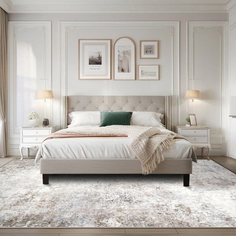 - CLEANING TOOL INCLUDED: Pet hair, crumbs, crayons, and even dust—plenty of debris can end up on a well-loved carpet. This is just one reason we’ve created our family & pet friendly rug with a low pile to prevent build-up. Plus, we even include a free cleaning tool to help you take care of your neutral bedroom rugs with ease