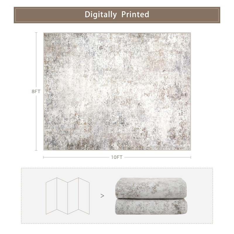 Srugn Washable Rugs 8x10 Area Rugs for Living Room,Modern Abstract Rugs for Bedroom,Large Carpets,Ultra Soft Faux Wool Retro Dining Room Rug,Non Slip&Non-Shedding Low Pile Print Rug- Beige Grey