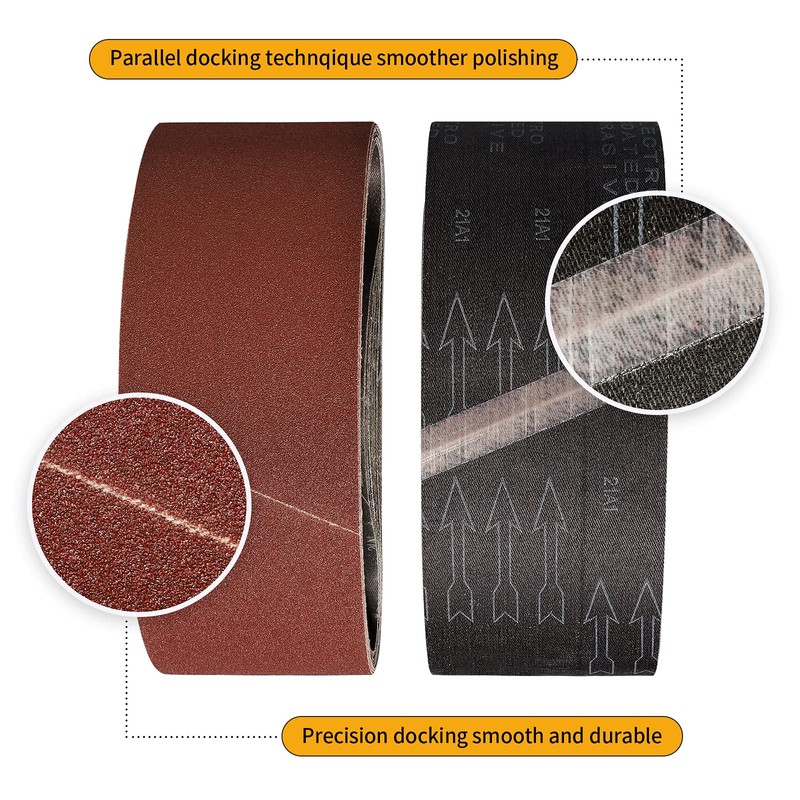 - Connection: Precision manufactured bidirectional belt joint, diagonal connection eliminates splicing unevenness, the interface of the belt sanding belts is flat, firm and not easy to break under pressure