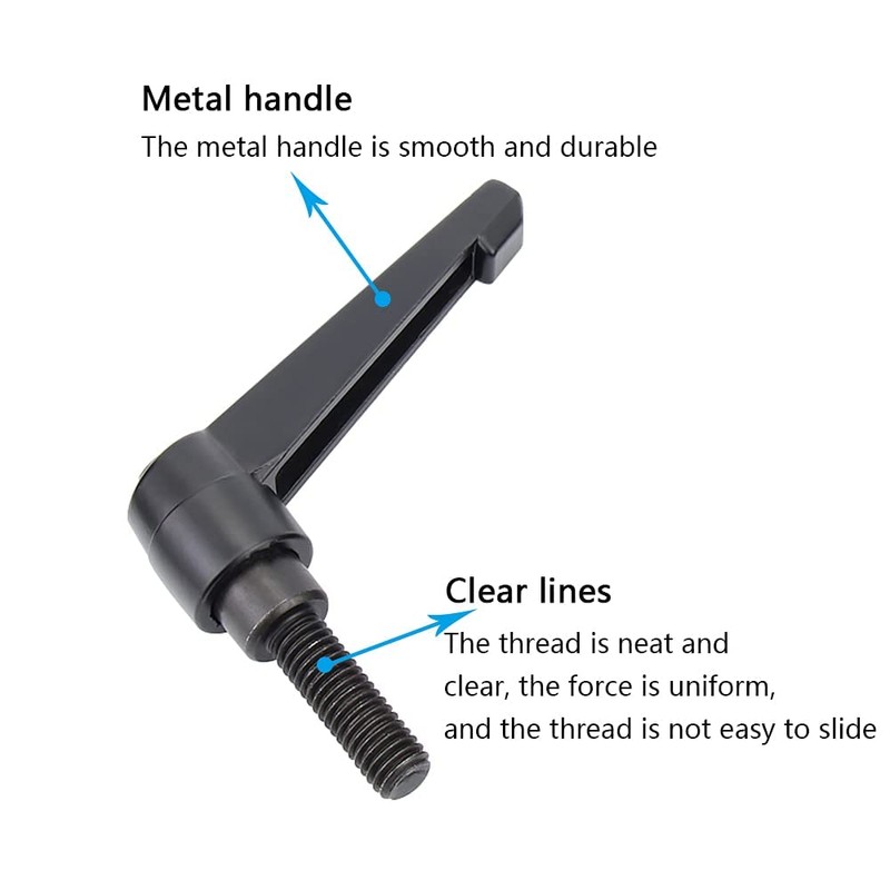 - Material: the clamping lever handle is made of high quality zinc alloy, possesses high strength and corrosion resistance, rust-proof and durable. The corresponding threaded screw is made of high quality stainless steel, corrosion resistant and heat resistant, sturdy and stable.