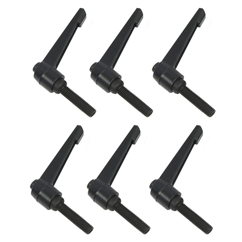 SRunDe Pack of 6 M6 Clamping Lever Handle, External Thread, Black, Aluminium Alloy Adjustable Handle, Machine Handles with Threaded Screw, Accessories for Machine Tools, Welding Machines, Printing