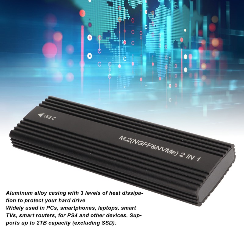 1、High Speed: M.2 NVMe SSD up to 10Gbps high speed, M.2 SATA SSD up to 5Gbps speed, perfect for data transfer and data backup, a HD movie transfer only takes 2‑5 seconds. 2、Easy To Install: NVMe enclosure for quick and easy installation of M.2 NMVe SSD or M.2 SATA SSD. hot swappable, plug and play. With chipset RTL9210B, compatible with 2230, 2242, 2260 2280 M.2 NVME (PCIE) and NGFF (SATA) SSDs. 3、Efficient Heat Dissipation: The enclosure is an aluminum alloy housing with 3 layers of heat dissipation to protect your drive. The lightweight and slim enclosure allows heat to escape in time for data transfer and is equipped with thermal pads to help maintain a cool operating environment for optimal performance. 4、Support: M.2 external enclosure compatible with multiple operating systems, for Windows, for OS, for Linux, for Android. supports for UASP for Trim for ultra fast transfer speeds. Support 2230 2242 2260 2280 4 sizes of M.2 SSD. 5、Applicability: Widely used in PCs, smartphones, laptops, smart TVs, smart routers, for PS4 and other devices. Supports up to 2TB capacity (excluding SSD).