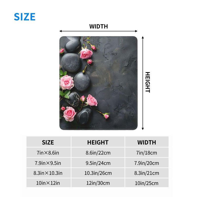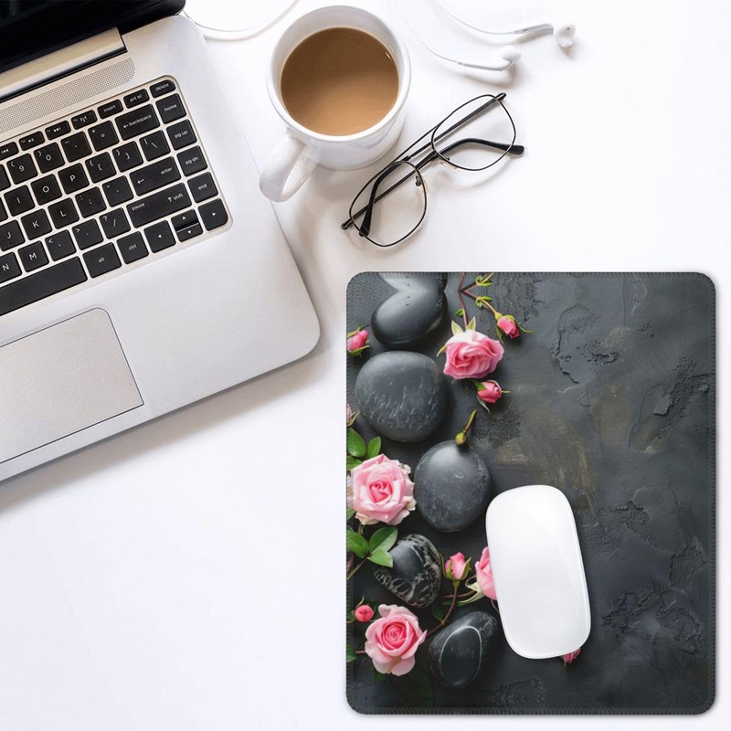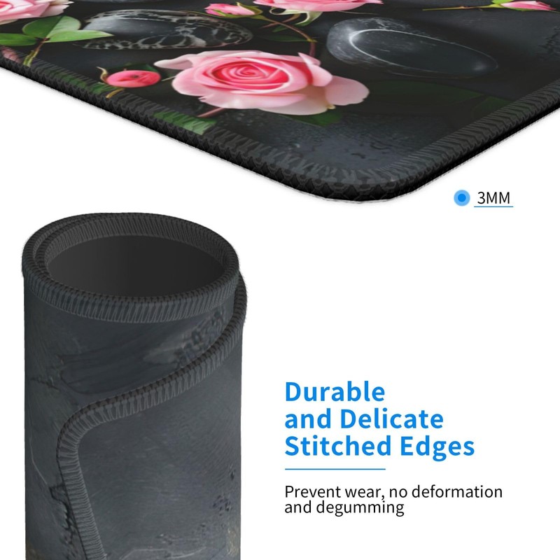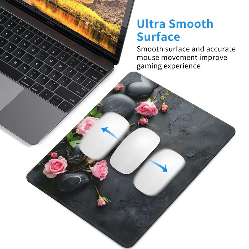 SSIMOO Spa Stone and Rose Flowers Desk Computer Pad-Gaming Computer Mat for Office and Home Use-Cute Computer Pad, Black