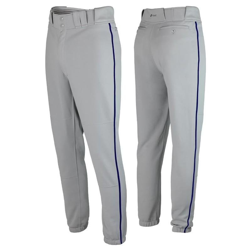 SSK Showcase Collection Flex Bottom Adult Baseball Pants | Adult Sizes Solid & Piped (US, Alpha, Medium, Regular, Regular, Grey/Navy)