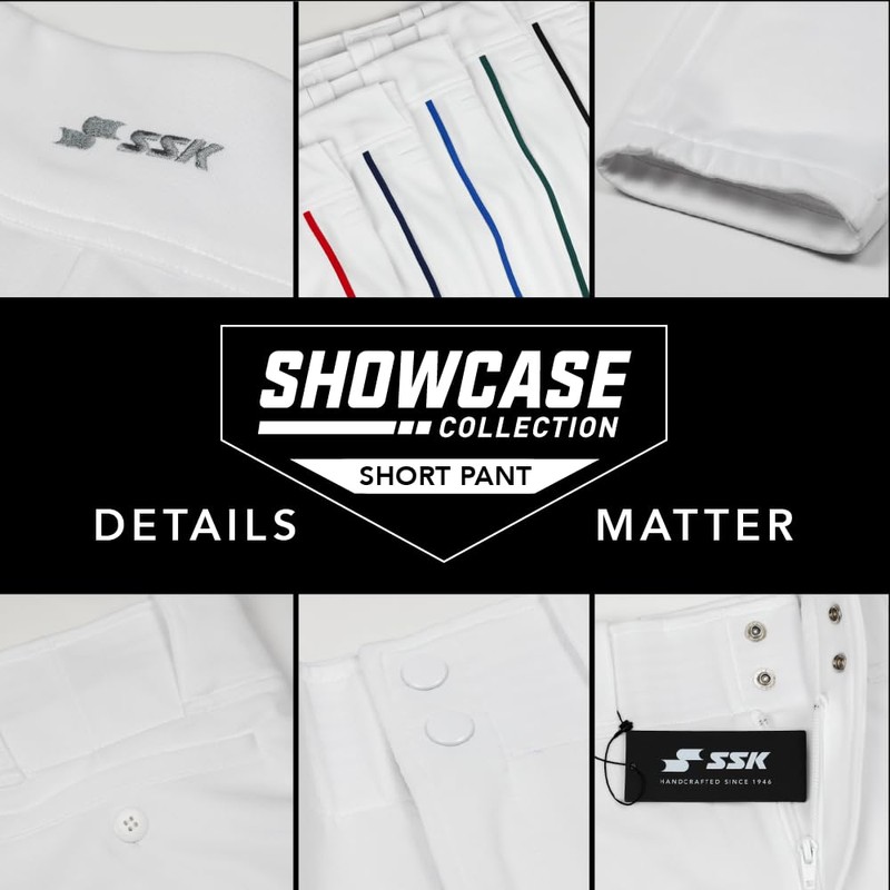 - Every aspect of the SSK Showcase Short Pant reflects a commitment to quality. From the durable fabric and reinforced stitching to the precision manufacturing methods, no detail has been overlooked. These pants are a testament to superior craftsmanship, giving players the confidence that their gear will perform at the highest level.
