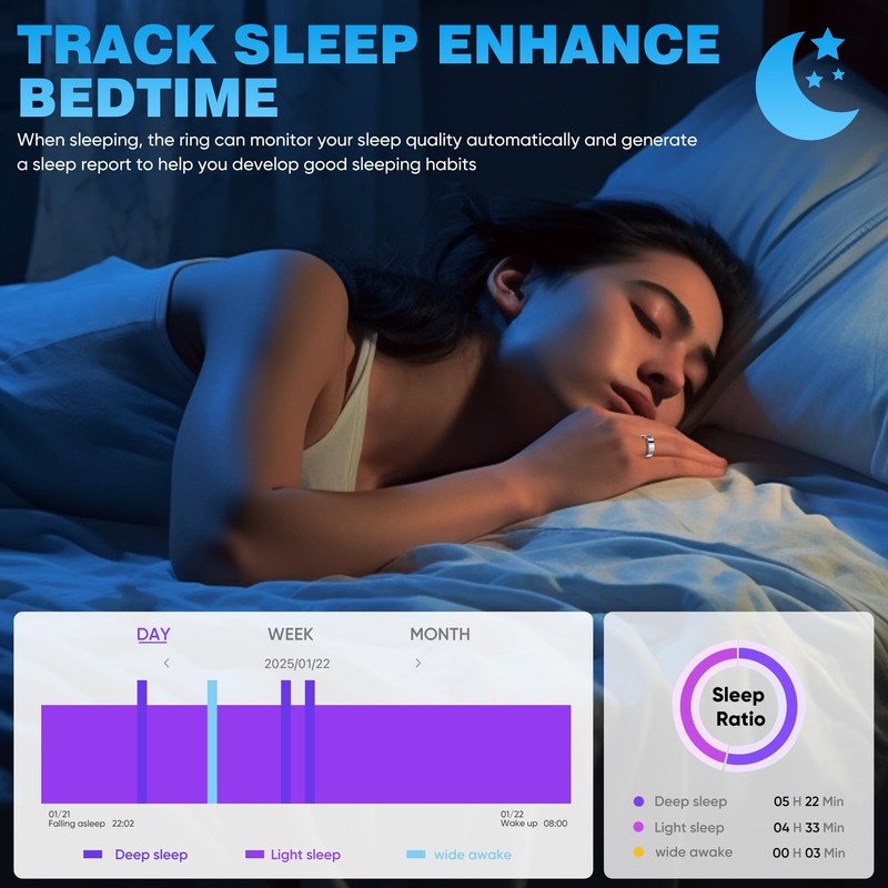 - 【All Day Health Monitoring】LED smart ring health 24-hour uninterrupted recording of sleep structure, monitoring of your , measuring saturation, accurately capturing every beat, and presenting real-time changes in physical signs, like a protector, guarding your health every day.