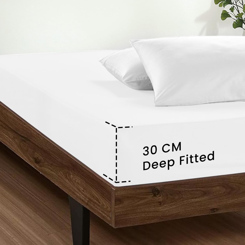 • 𝐏𝐞𝐫𝐟𝐞𝐜𝐭 𝐅𝐢𝐭: With a depth of 30 cm, The elasticized corners ensure a secure and wrinkle-free fit, preventing the sheet from slipping off during the night.