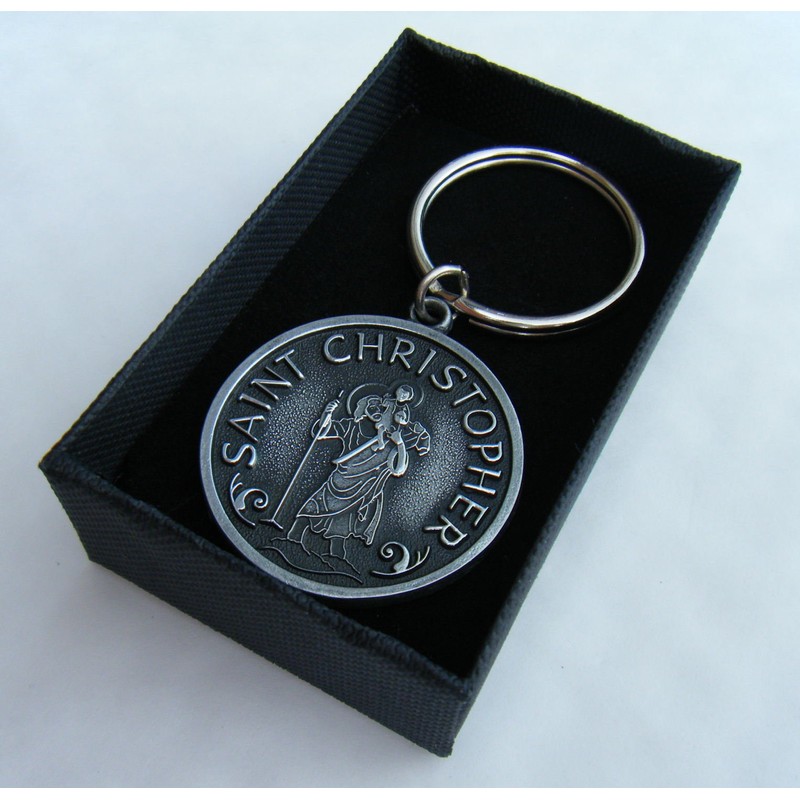 St Christopher Irish Pewter Metal Keyring Gift Boxed