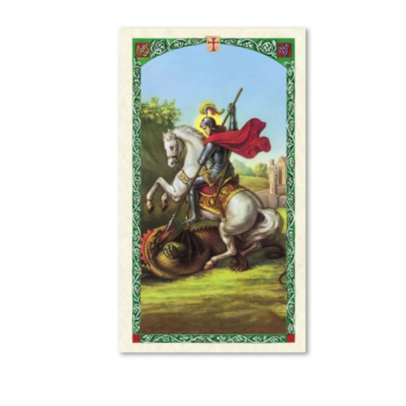 - PRAYER ON BACK: a prayer for the intercession of St. George is printed on the back of the card