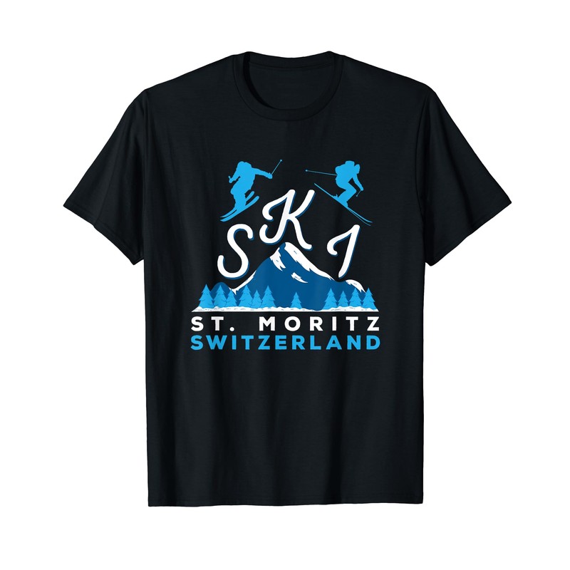 - Skiing accessories to wear in the snow under your retro 80s or 90s ski jacket with your skis, goggles, boots & hat. Cool ski St Moritz Switzerland tshirt for men, women & kids and a great gift for dad or present for mom.