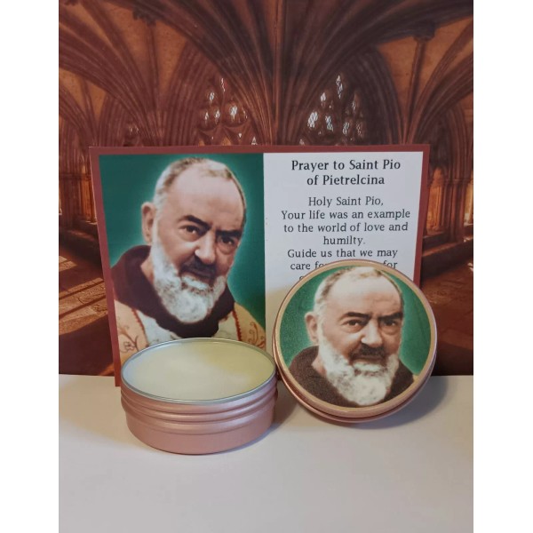 St. Padre Pio Solid Holy Relic Balm with Laminated Prayer Card