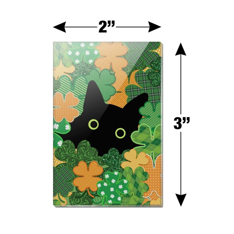 St. Patrick's Day Black Cat Shamrock Rectangle Acrylic Fridge Refrigerator Magnet