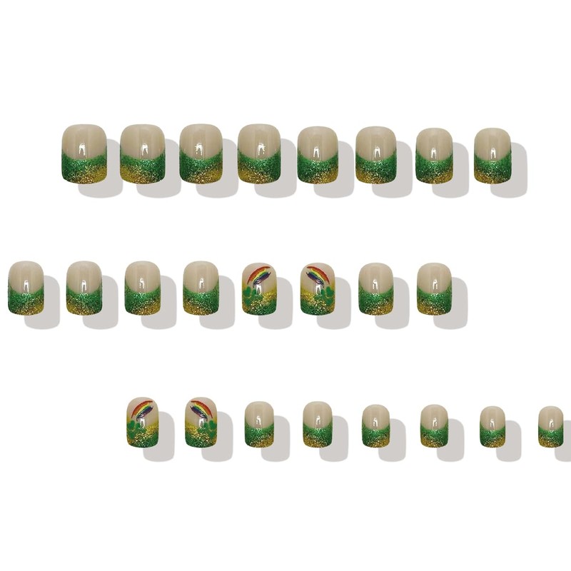 - Package: 24Pcs St.Patrick's Day press on nails, 24 pieces of jelly glue, 1 mini nail file, 1 wooden stick; jelly glue is not as strong as liquid glue, but it can make false nails reusable; Please use appropriate glue according to different occasions