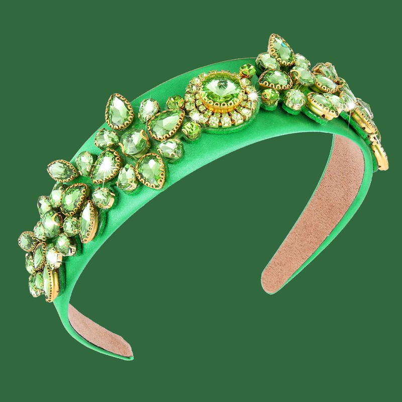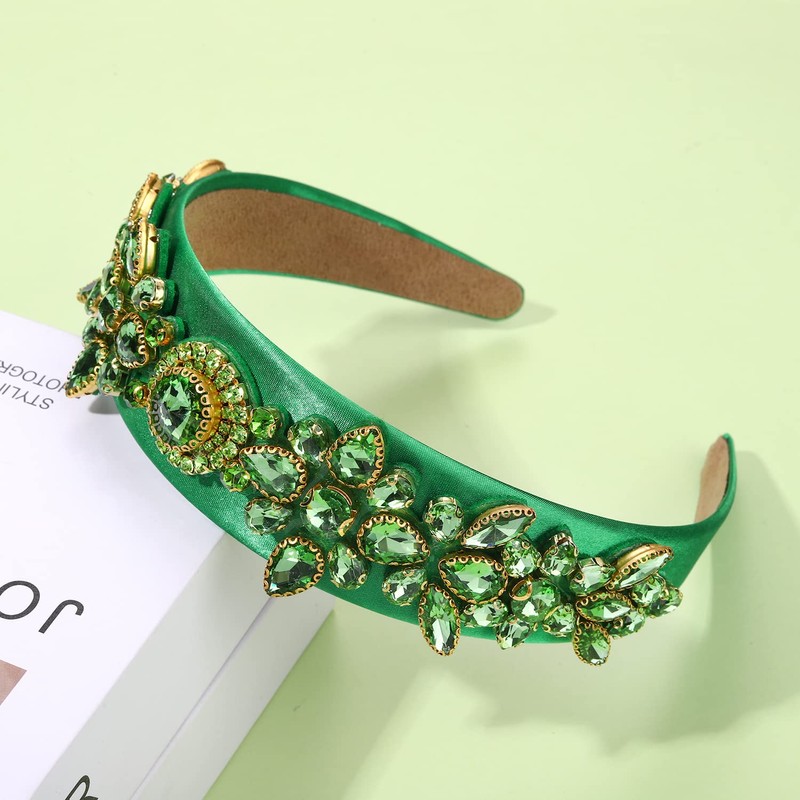 - ☘️ Beautiful and Non-slip: The sparkle rhinestone green headband can be worn all day, the flat non-slip pad is soft and comfortable,and will not damage the hair, the elastic design can be firmly fixed on the head,suitable for different women's head to wear.