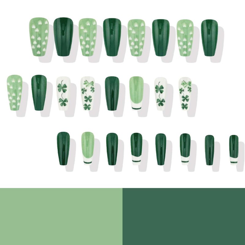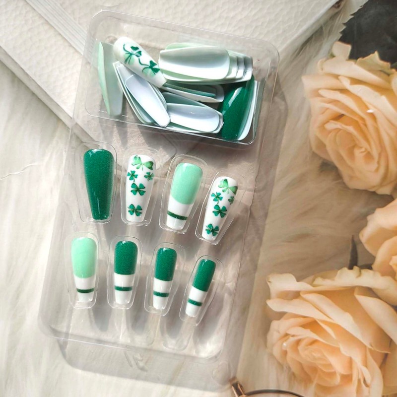 Name: St. Patrick's Day Long Coffin Clover Fake Nails