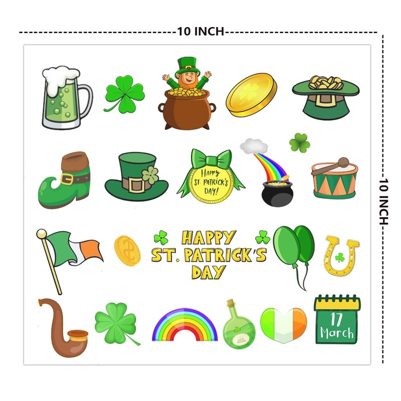 - 1.St.Patrick's Day stickers are not only perfect as party decorations and gifts,but also as reward stickers for students and children, filled with the festive atmosphere of St. Patrick's Day.