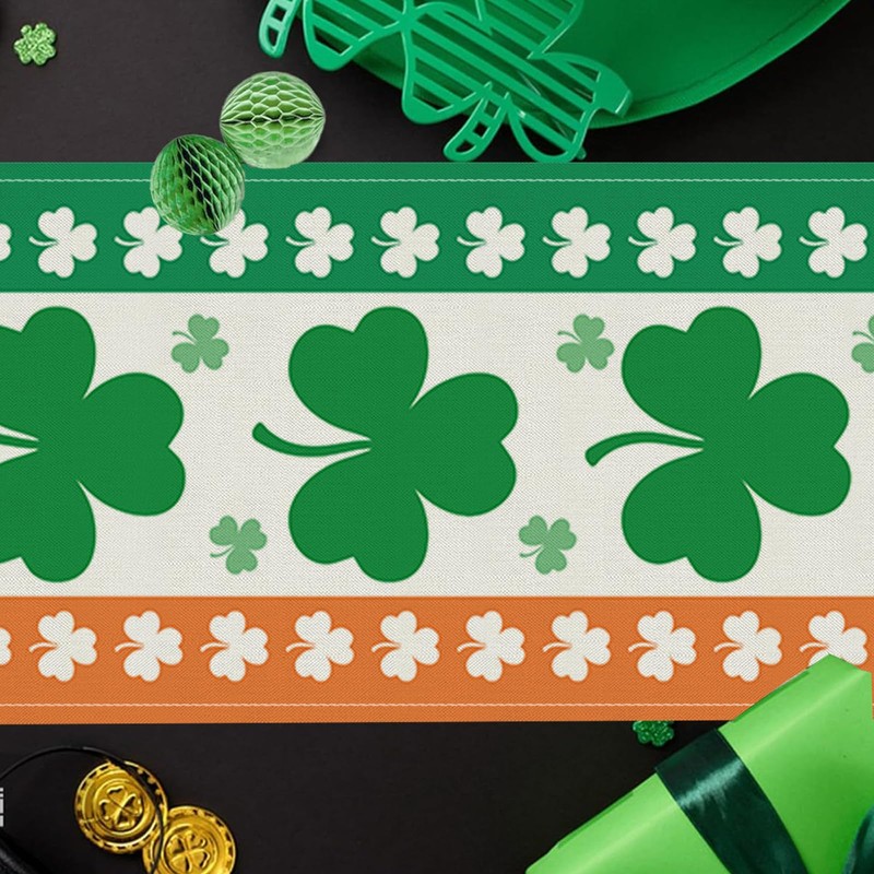 St. Patrick's Day Table Runner Shamrock Green and Orange Stripe Table Decorations Holiday Spring Kitchen Dining Home Party Supply 13x36 Inch
