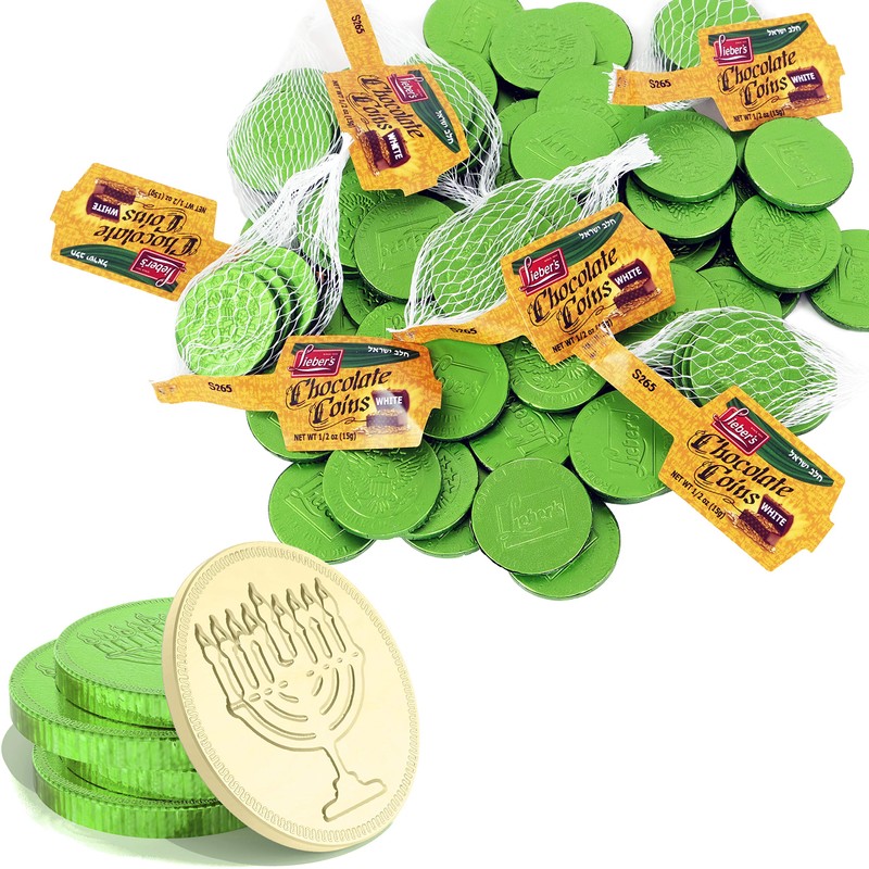 White Chocolate Hanukkah Gelt Coins, Dairy Chocolate Gelt, Made in Israel, Kosher-OUD