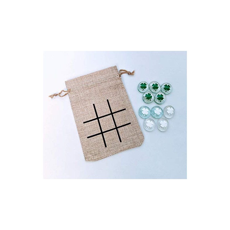 - This sets includes one burlap drawstring bag which measures approximately 5" x 4" with 1" tic tac toe board squares made of vinyl.