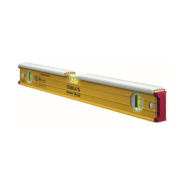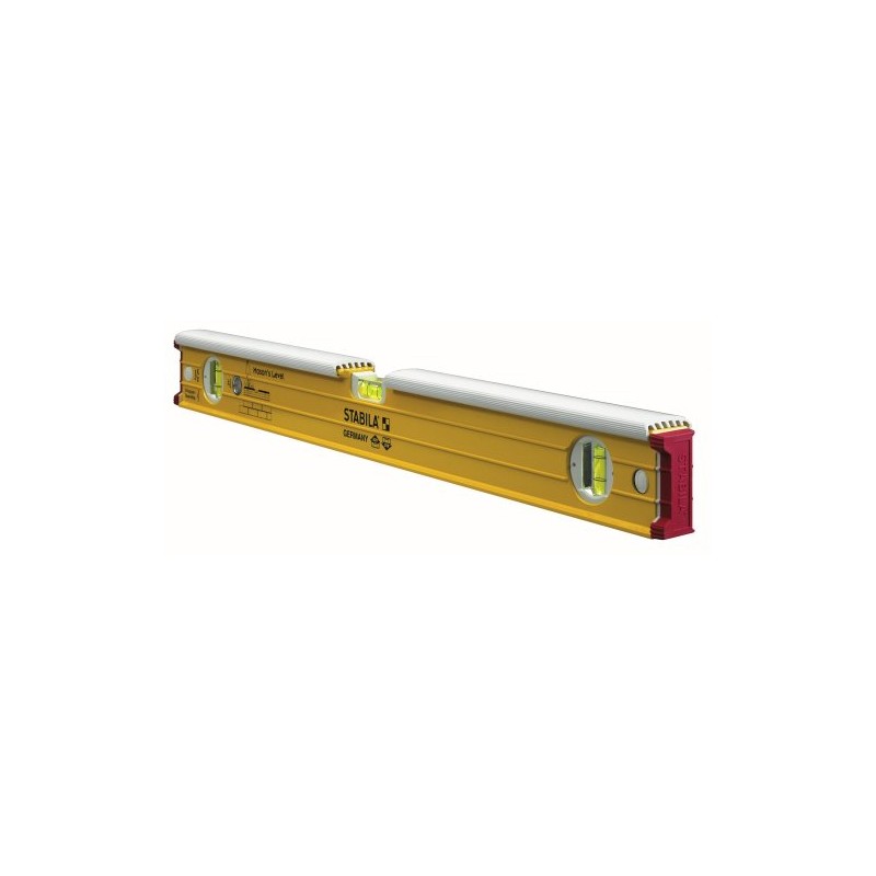 Stabila 24" Mason level has strike zone shields that are meant to be hit with a trowel. This level is ideal for corner build outs, columns and chimney work and is the ultimate level for the professional brick and block layer. Solid acrylic vials features the ultimate durability and precision. Easy to read on any course, one vertical vial located on one end and the other vertical vial located near the center of the level, also a center horizontal vial.