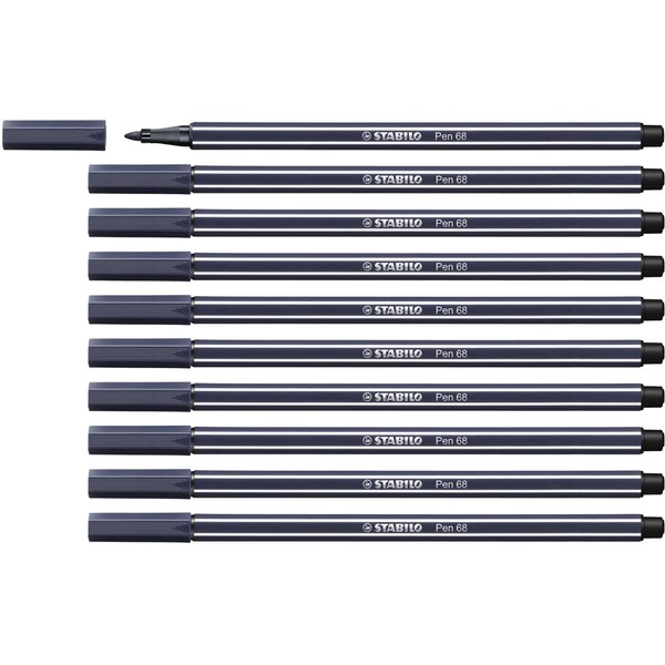 STABILO Pen 68 payne's Grey Pack of 10 - Premium Felt-tip Pen