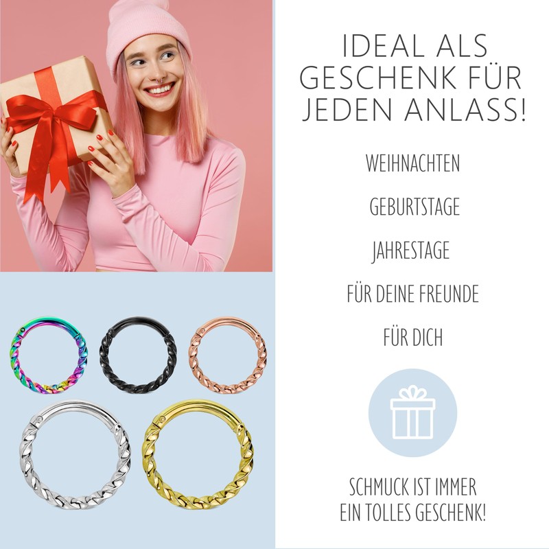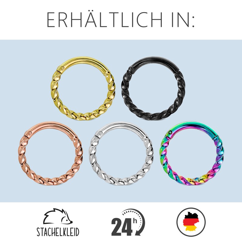 Stachelkleid Clicker Clicker Segment Ring Piercing Surgical Steel 316L Design Black Rainbow Rose Silver Gold 1.2 mm Earring Colourful Twisted Colours Anodised Multicoloured Multicolour Universal,