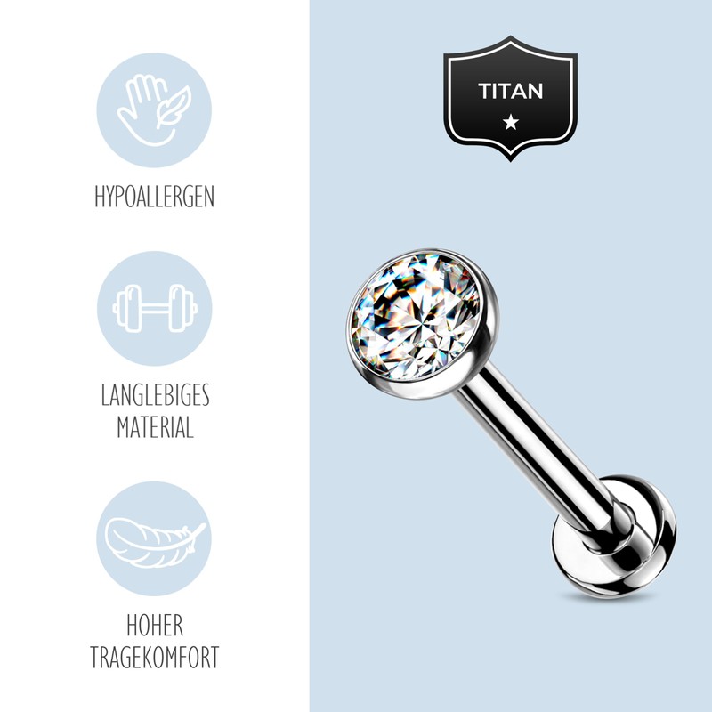 Stachelkleid Labret Piercing Titanium Zirconia Silver Push-in Without Thread ...
