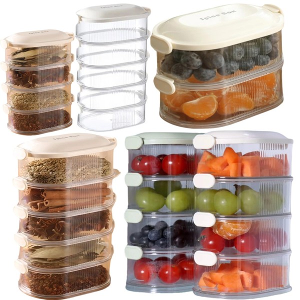 - Space-Saving Stack Design:Daily fruit snacks, garlic cloves, coffee beans or pills can be stored by it to avoid moisture and spoilage,It can also perfectly accommodate salt, sugar, spices and other condiments in the kitchen, making the kitchen countertop neat and orderly. It can even be used for drawer storage, organizing small bits and pieces, and keeping life organized,Interlocking grooves allow vertical stacking (up to 5 layers) – reduce cabinet clutter by 50%, Perfect for kitchens, refrigerators and storage boxes,food storage containers for pantry,food storage containers with lids