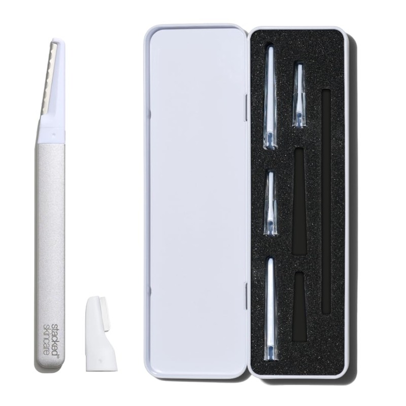 - StackedSkincare Dermaplaning Razor With Comfort Handle - Designed to have the perfect weight for easy and safe blade control, allowing the blade to glide gently on your skin with light strokes that remove fine hairs and exfoliate the skin to give you a radiant look.