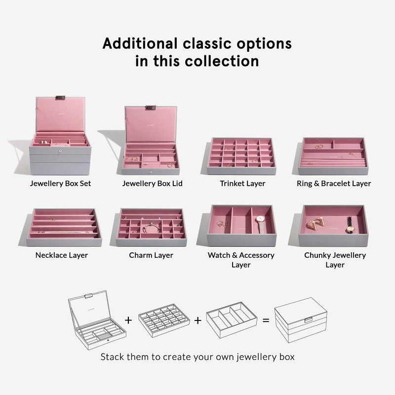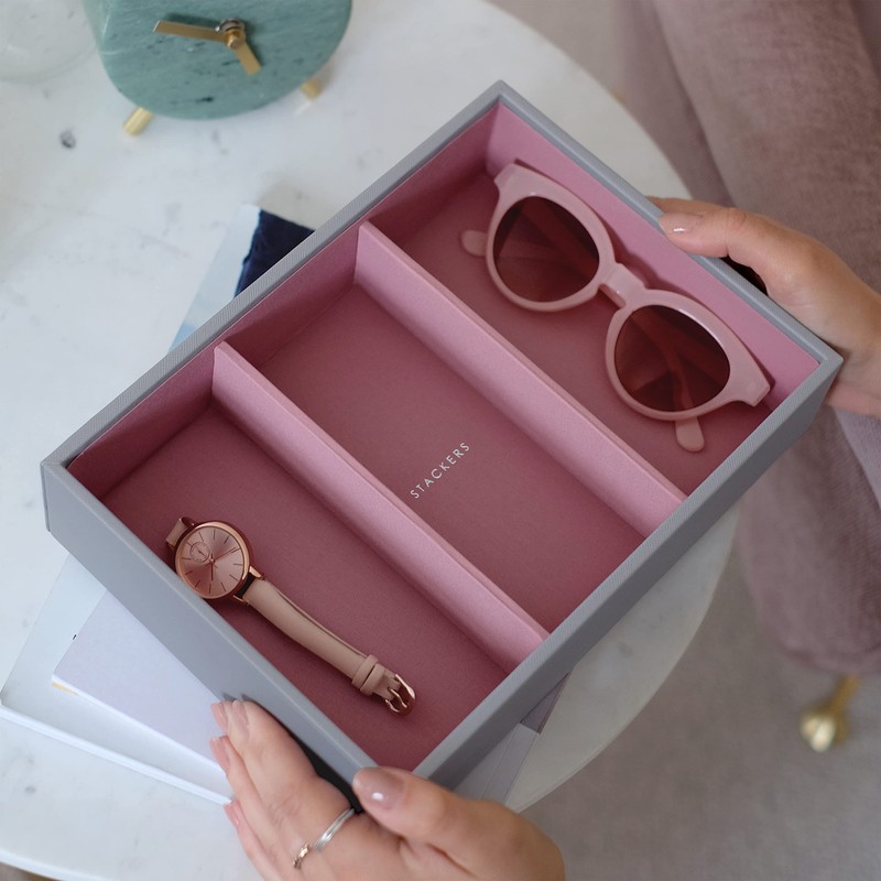 Stackers Dove Grey & Rose Classic Medium Jewellery Box Watch/Accessories Layer