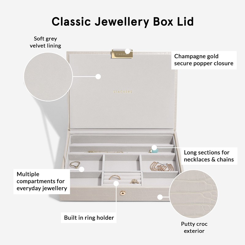 Stackers Putty Croc Textured Classic Medium Jewellery Box Lid