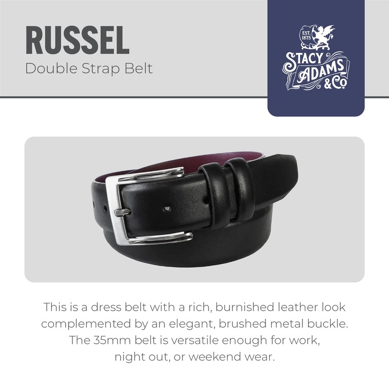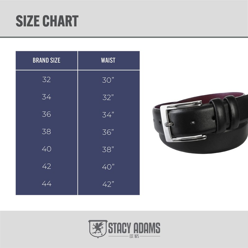 - AVAILABLE IN MULTIPLE SIZES: With a range of sizes from 32 to 44, the Stacy Adams Russell Belt provides a comfortable and secure fit for any man looking to upgrade his accessory collection.