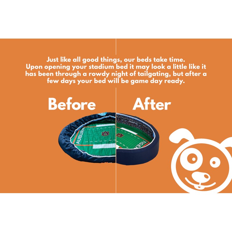 - ONE-OF-A-KIND - Patented stadium dog bed; authentic Bryant-Denny stadium & field graphics with hi-definition, sublimated printing. There’s nothing else like it