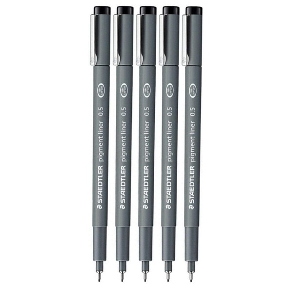 Staedtler 0.5 mm Pigment Liner Fineliner Sketching Drawing Drafting Pens Pack of 5