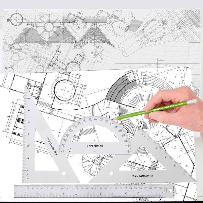 STAEDTLER Stainless Steel Math Set - With 12in Ruler, 2 Triangle Set Squares (45/90° & 30/60°), 6in Protractor - Precision Drawing & Drafting