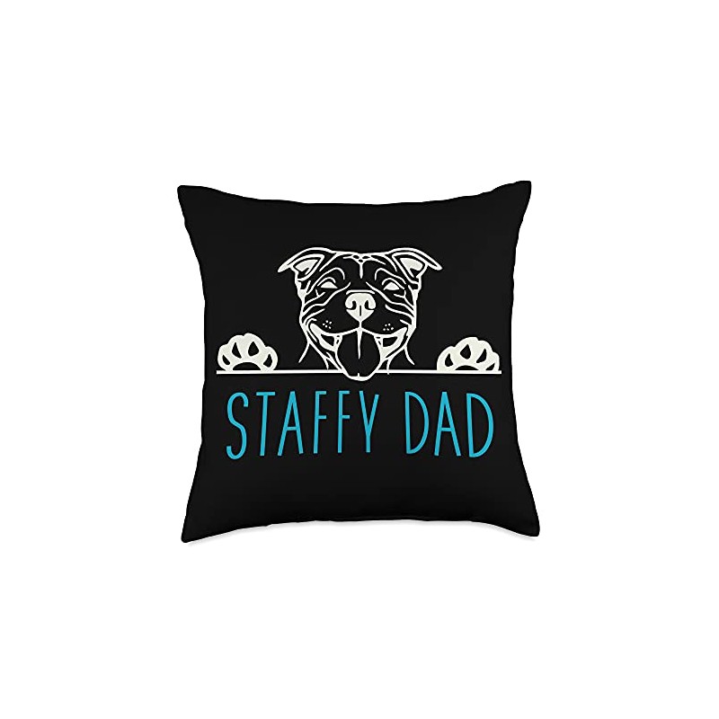 Staffy Dad Merch Staffy Dad with Staffordshire Bull Terrier Dog Throw Pillow, 18x18, Multicolor