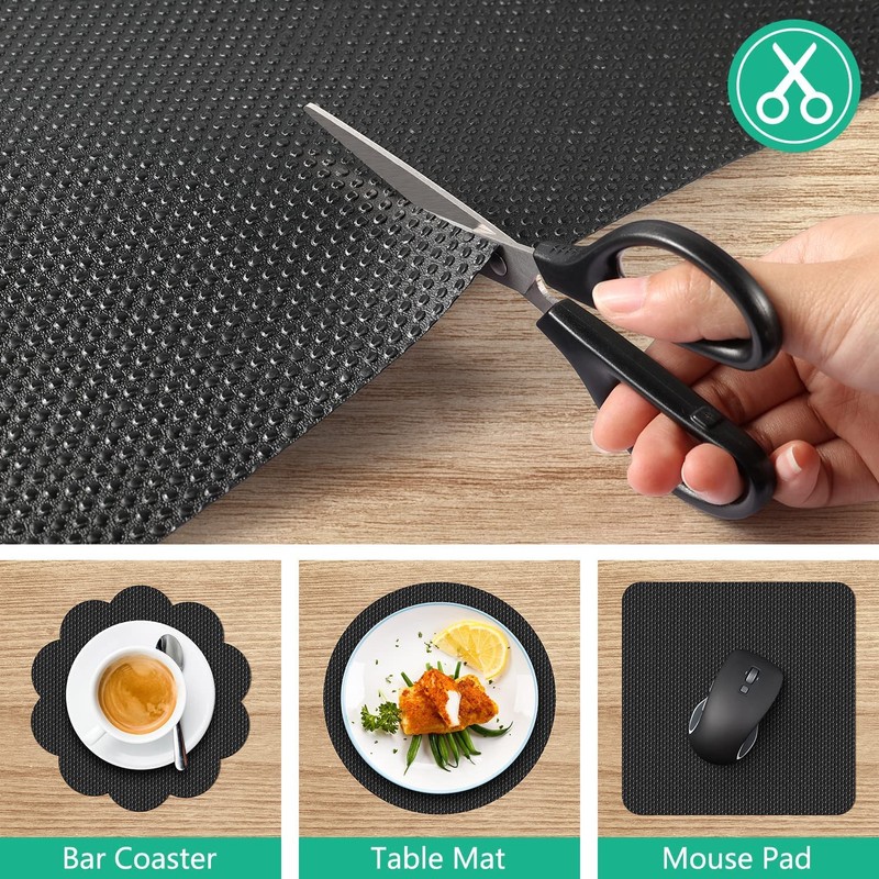 - đăMULTIFUNCTIONAL LINERă The waterproof shelf liner can not only be used as a kitchen liner to ensure the clean of the home, but also as a refrigerator mat to keep food and fruits fresh. Various Usage: Cabinet mat, drawer mat, desk mat, table mat, shelf liner, countertop.