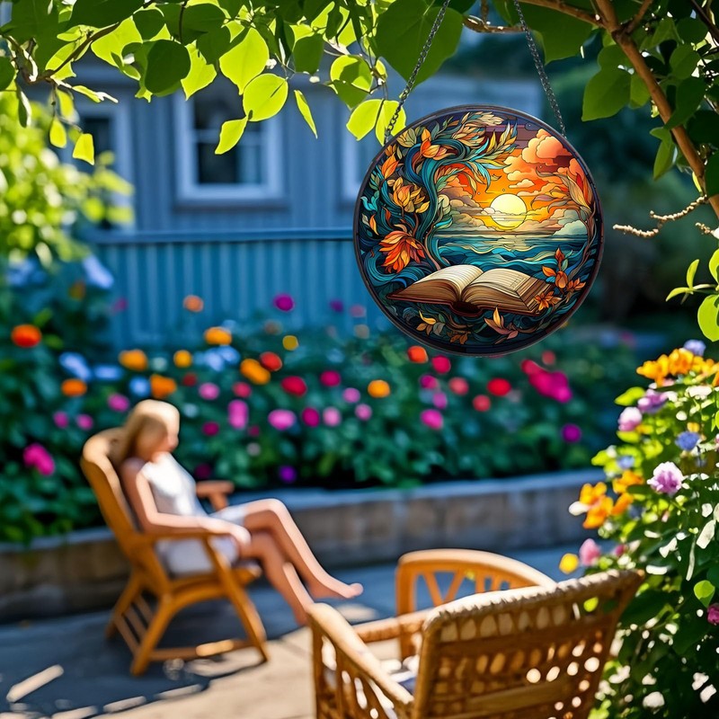 Stained Glass Window Hanging, Stunning 8''/20CM Suncatchers for Windows with Fade Resistant Hand-Painted Decorative Hanging Ornaments Captures Sunlight to Create a Vibrant Atmosphere (Book)