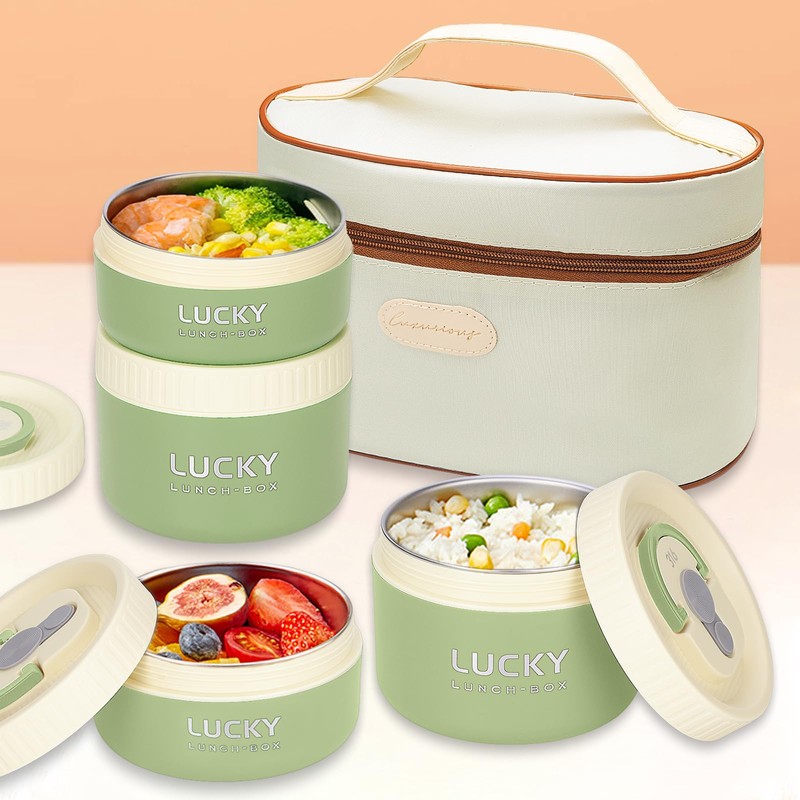 Why Choose Our Portable Insulated Lunch Container Set? - Independent Food Container Design - Food-grade Materials, Safe & Environmentally Friendly - Leak Proof & Easy To Clean - Keep Food Warm & Microwave available - Application For Home, Office, Outdoor, Etc Specifications: Name: Portable Insulated Lunch Container Set Material: Thermal lunch box: food grade 18/8 stainless steel (inner)+ PU insulation material (middle)+ plastic PP (external) Insulated bag: pearl cotton + aluminum foil + oxford cloth material Capacity & Size: Insulated Bag: 9.4 x 6.1x 5.7 in 2 *Small Lunch Box : 13.5 oz, 420ml, 4.5×2.5 Inch 2 *Large Lunch Box : 20.5 oz, 620ml, 4.5×3.5 Inch Heat Preservation Function: With the use of insulation bag, the thermal lunch box can keep food warm for2-3 hours. Microwave: Support. Using tips: 1. The lid needs to cover the lunch box, but it cannot be locked. 2. Open the ventilation holes on the lid and put the whole lunch box into the microwave oven for heating.THIS ITEM IS NOT INTENDED FOR USE BY CHILDREN 12 AND UNDER