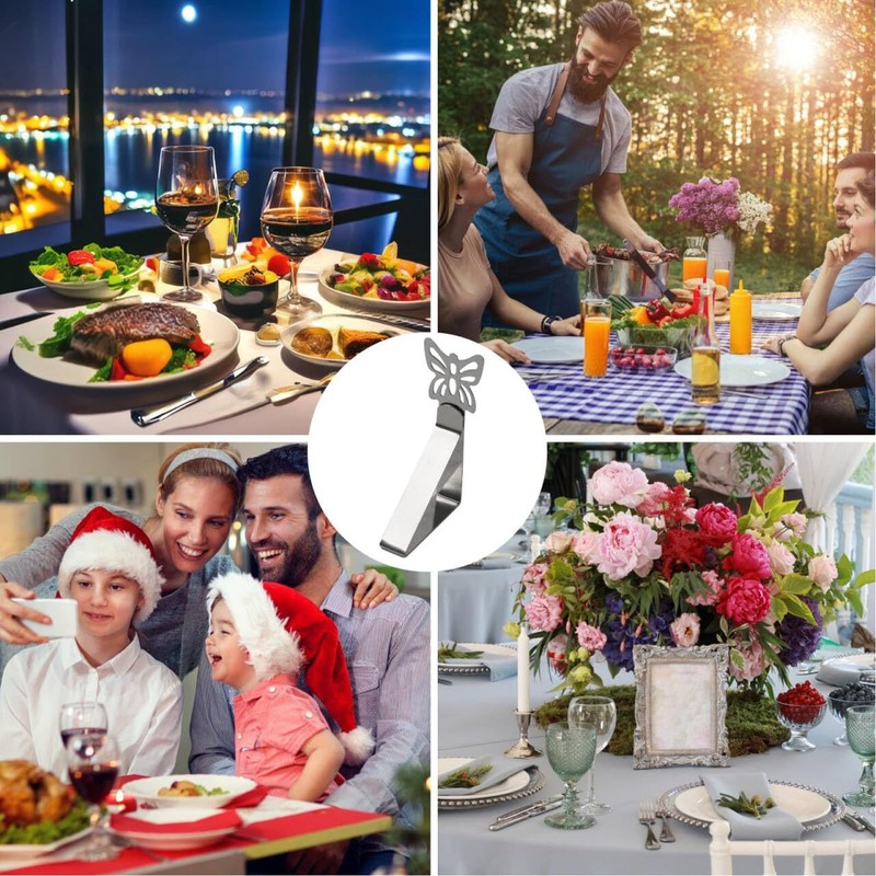 - Super strong fixing force: made of thickened stainless steel material, it can firmly hold heavy tablecloths and waterproof fabrics, resist wind and slip, and no longer worry about tablecloths being blown away during outdoor camping, weddings and banquets