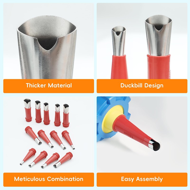 - 【45-Degree Mouth Design】Our stainless steel caulking nozzle coating kit is designed with a 45-degree mouth shape to meet various gaps in life. Independent protective cover to avoid clogging and waste. Smoother to use and easier for your repair work.