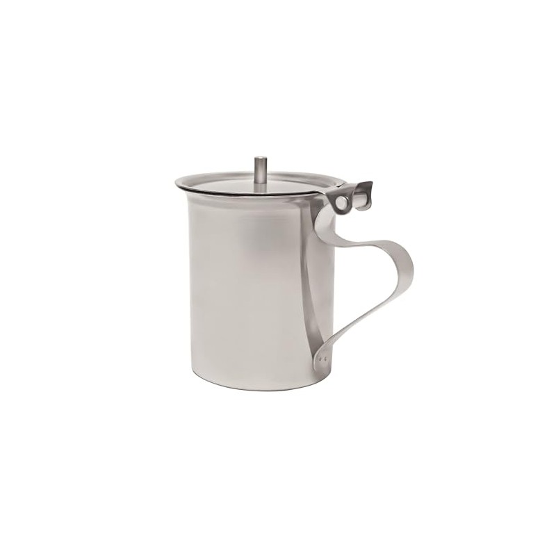 Stainless Steel Creamer Dispenser with Handle, 10 oz, Flat Lid Stackable, Mir...